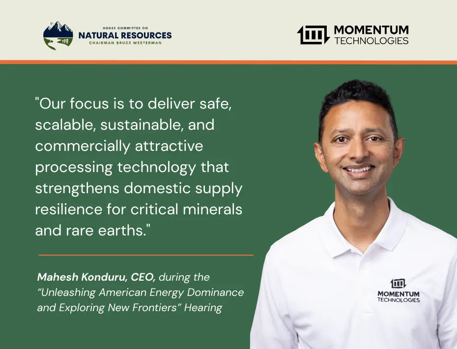 Momentum Technologies CEO Testifies Before Congress on Critical Minerals Processing Solutions to Strengthen American Energy Independence
